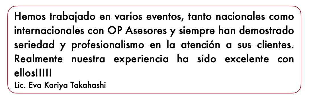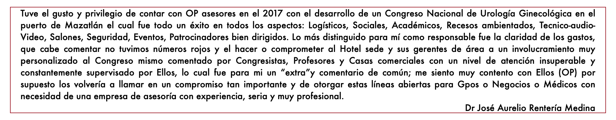 Con más de 18 años de experiencia en la organización de Congresos, Convenciones, Exposiciones y Eventos, en OP Asesores Profesionales somos líderes en la Industria de Reuniones. Contamos con el conocimiento, la experiencia y el equipo humano necesario para desarrollar proyectos de comunicación, academia y lanzamientos con los más altos estándares de calidad.